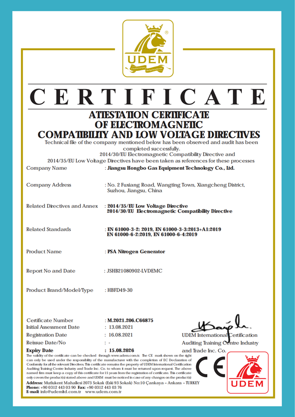 制氮機(jī)ce證書